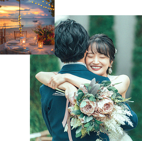 事前にじっくりとお打合せさせていただき、 現地にしかない景色、お二人ならではのアイデアなど 輝く一瞬一瞬を余すところなく思い出に残せるよう 現地のスタッフとともに自由度の高いウエディングを 実現いたします。
